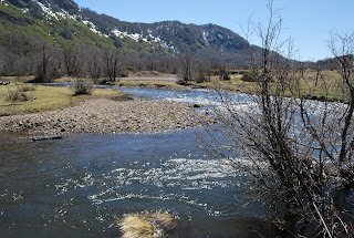 die Nase wehen ließ :D Die Fahrt war nicht lang und schließlich waren wir an diesem wunderschönen Ort. Auf dem nahen Berg konnte man noch Schnee sehen, obwohl die Sonne heiß vom Himmel herunterknallte. Wir waren direkt am Wasser und allein- allein mit den Pferdeäppeln , aber das stört hier niemanden mehr :-P Die Sonne war so heiß (über 25°C), aber als ich mich im Fluss „Culebra“ abkühlen wollte, hat man doch gemerkt, dass das Wasser der grade geschmolzene Schnee aus den Bergen ist. Ich habe es mir trotzdem nicht nehmen lassen den ganzen Fluss zu durchqueren. Nachher war ich bis zu den Oberschenkeln nass und meine Beine waren taub von dem eisigen Wasser:-P Der Name des Flusses „Culebra“ bedeutet übrigens „Schlange“, da er sich so durch die Landschaft schlängelt, das nur mal so nebenbei bemerkt. Als ob das nicht jeder Fluss tut xD An diesem perfekten, idyllischen Ort haben wir gegrillt und ganz viel Mate getrunken. Ich war eigentlich schon satt, aber das Fleisch mit der Soße, dem Brot und der Tomate war einfach perfekt:D