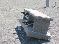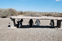 Als wir am nächsten Morgen in Puerto Madryn ankamen, wurden wir schon von unserer Reiseleitung und dem Fahrer erwartet. Was wir nicht wussten war, dass unsere Führung über die Halbinsel Valdés direkt losgeht, denn wir hatten einen Tag verloren. Nach der langen Busfahrt ging es direkt bis zum Abend mit dem Auto weiter. Einmal quer über und rund um die Halbinsel sind wir gedüst, hab das Meer gesehen, die Seelöwen und natürlich die Pinguinkolonie von San Lorenzo. Wir haben Guanacos, Kakteen und Strauße gesehen, und mit unserer Reiseleitung gelacht:D Am Abend haben wir uns das Treiben auf der Straße angesehen: Leute, die Ampelbelustigung gemacht haben und so ihren Geldbeuten ein wenig aufgebessert haben. Das genialste war aber, als ein Hund auf einem Autodach an uns vorbeifuhr. Nicht auf einer Pick-Up-Ladefläche, was hier ja ganz normal ist, sondern auf einem ganz normalen Dach eines Kleinwagens:D Leider war die Kamera nicht schnell genug=(