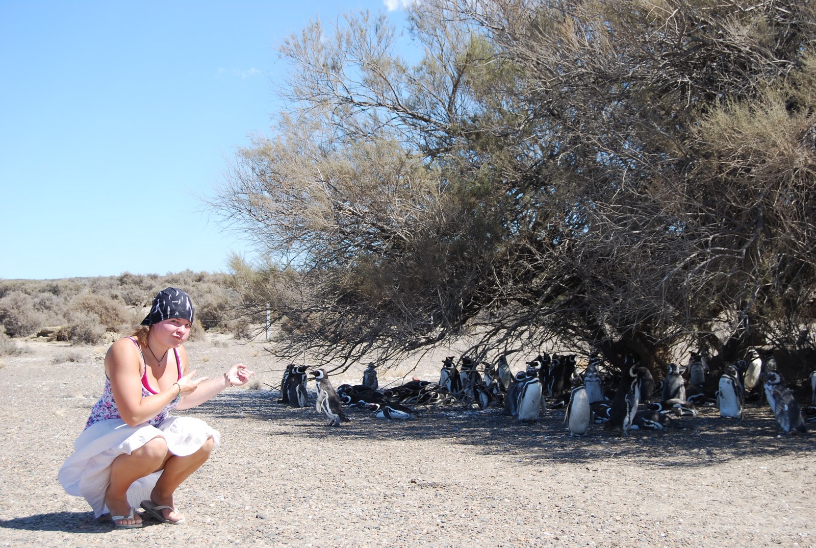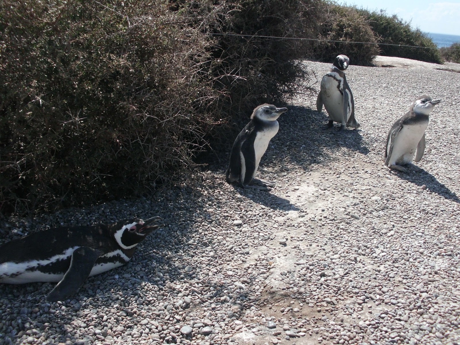 Als wir am nächsten Morgen in Puerto Madryn ankamen, wurden wir schon von unserer Reiseleitung und dem Fahrer erwartet. Was wir nicht wussten war, dass unsere Führung über die Halbinsel Valdés direkt losgeht, denn wir hatten einen Tag verloren. Nach der langen Busfahrt ging es direkt bis zum Abend mit dem Auto weiter. Einmal quer über und rund um die Halbinsel sind wir gedüst, hab das Meer gesehen, die Seelöwen und natürlich die Pinguinkolonie von San Lorenzo. Wir haben Guanacos, Kakteen und Strauße gesehen, und mit unserer Reiseleitung gelacht:D Am Abend haben wir uns das Treiben auf der Straße angesehen: Leute, die Ampelbelustigung gemacht haben und so ihren Geldbeuten ein wenig aufgebessert haben. Das genialste war aber, als ein Hund auf einem Autodach an uns vorbeifuhr. Nicht auf einer Pick-Up-Ladefläche, was hier ja ganz normal ist, sondern auf einem ganz normalen Dach eines Kleinwagens:D Leider war die Kamera nicht schnell genug=(