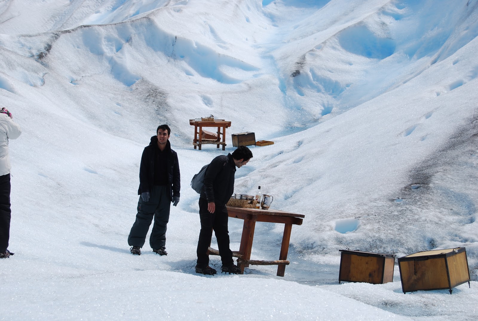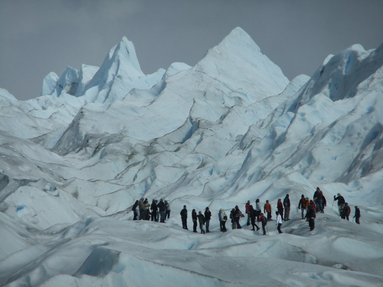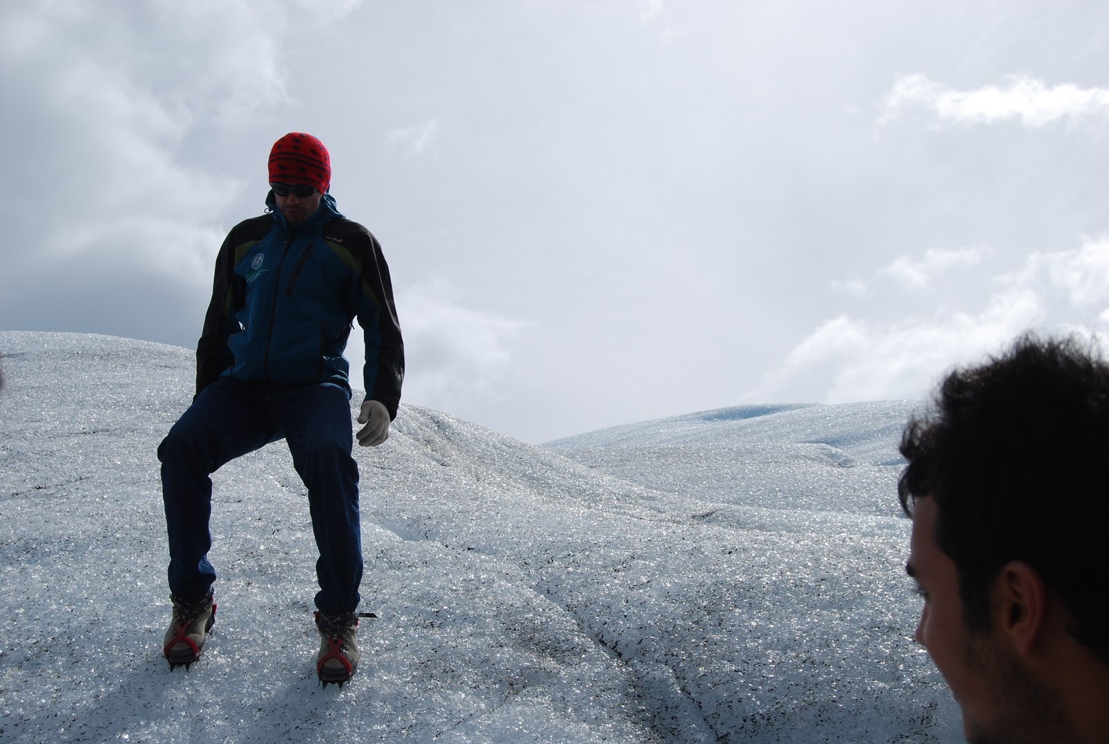 Schon ein paar Stunden später ging es mit dem Flieger weiter nach Calafate zu dem riesigen Perito-Moreno-Gletscher. Endlich waren wir wieder in unserem Zeitplan drin und konnten so einen Tag ein bisschen ausspannen und uns auch die Stadt ansehen. Zu der Trekkingtour über den Gletscher wurden wir mit mehreren anderen von einem Bus abgeholt, der uns dann in den Nationalpark brachte. Mit dem Schiff sind wir erst über den Lago Argentino gefahren und wurden am anderen Ufer von unseren Führern erwartet. Mit Eisstollen unter den Füßen ging es endlich auf’s Eis. Um uns herum konnte man zwischenzeitlich nur weiß sehen; weiß, blau und das reflektierende Eis- unbeschreiblich. Während eine Dame das Eis runterkugelte und daraufhin umkehrte, sind alle anderen weiter gegangen und am Ende auch dafür belohnt worden. Genau wie letztes Mal wurden wir an der letzten Station auf dem Eis mit Alfajores und mit Eis vom Gletscher gekühltem Whiskey erwartet und so fand unsere kleine Reise über das Eis einen gebürtigen Abschluss. Allerdings noch kein Ende, denn wir sind noch zu den Aussichtsbalkons gefahren, von wo aus man den ganzen Gletscher von verschieden Punkten aus besichtigen und gute Fotos machen kann. Der Gletscher war wahrscheinlich das Highlight- jedenfalls für Steffi=) Ich kann mich noch nicht entscheiden:-P Letztes Mal war auch für mich der Gletscher das Größte, aber diesmal war ich auch total beeindruckt von der Halbinsel in Puerto Madryn, also noch mehr als letztes Mal:D