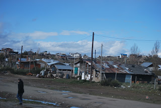 und trocken war, rund um die Stadt gefahren. Um die Stadt zu fahren bedeutet gleichzeitig entlang des riesigen Sees. Heute war das Wetter leider etwas schlecht, es hat geregnet und der Wind pfiff. Dieser hat den See in ein „stürmisches Meer“ verwandelt, aber es war einfach großartig. In Bariloche wurde aber auch nochmal der Unterschied zwischen arm und reich ganz deutlich. Am Wasser stehen große Häuser mit schönem Grundstück und je weiter man aus der Stadt herauskommt, desto kleiner und schlechter werden die Hütten. Irgendwann kommt eine Müllkippe, die wohl die große Grenze bildet, denn danach ist nichts mehr von der schönen Stadt zu erkennen. Die Hütten sind zum größten Teil nicht fertiggestellt, mit Löchern in Dach und Fenstern, nicht