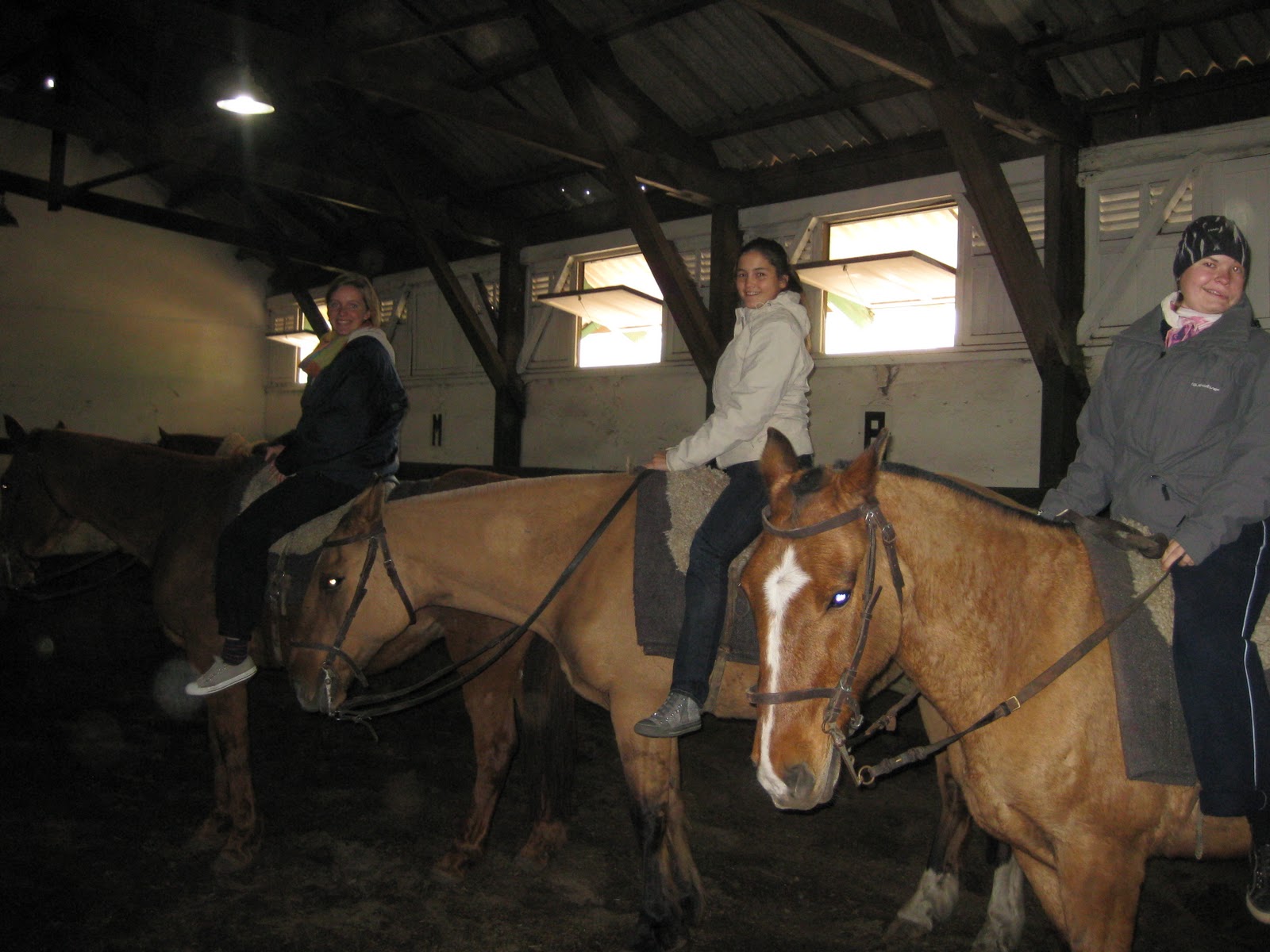 Da wurden wir von Silvie abgeholt und sind zum Behindertenreiten gefahren. Erst waren wir ein bisschen „enttäuscht“, weil die angekündigten Kinder alle schon über zwanzig waren und gar nicht sooo einen besonderen Eindruck gemacht haben, aber schließlich hat man es doch gemerkt. Es war interessant zu sehen, wie glücklich sie waren, wenn die Pferde das gemacht haben, was sie wollten und es ihnen Selbstbewusstsein