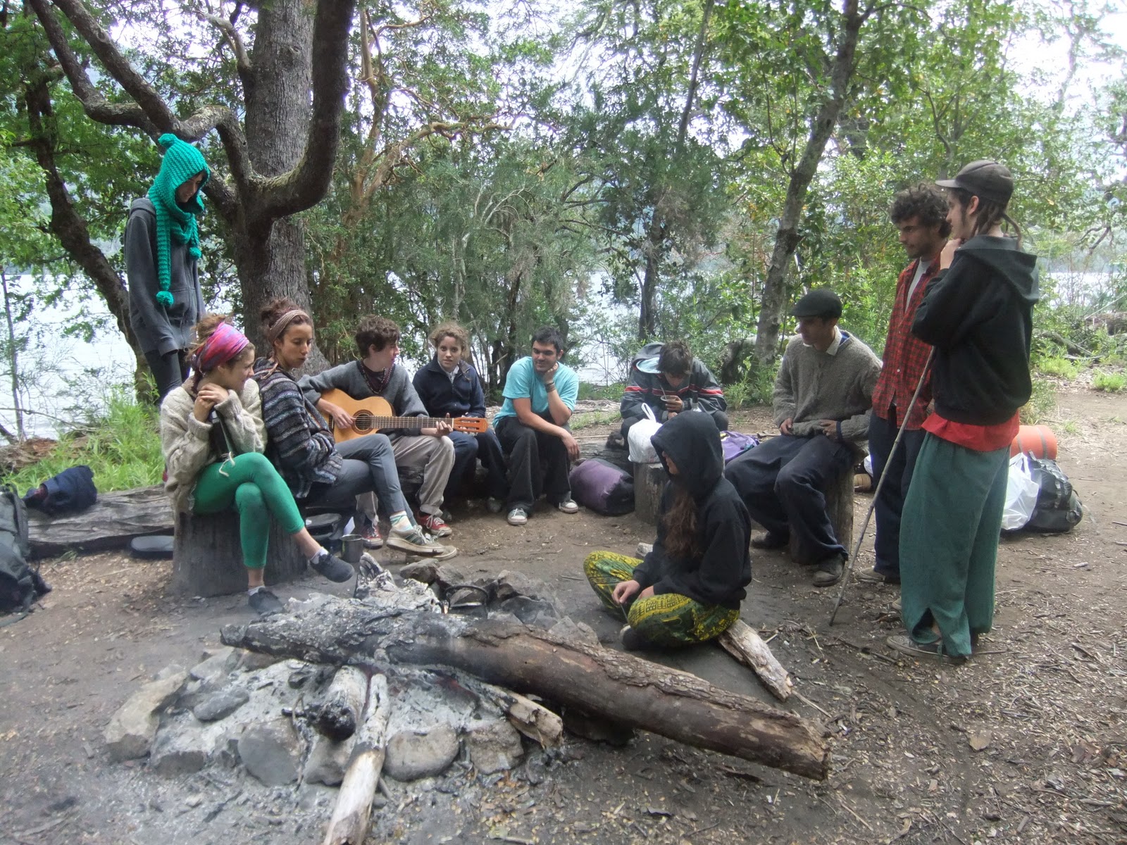 und wie es mit einem Mal kalt wird. Um uns aufzuwärmen haben die Jungs ein schönes Feuer angezündet und wir haben es uns gemütlich gemacht: Es wurde immer dunkler, Gon hat Gitarre gespielt und alle haben gesungen- sehr harmonisch. Gekocht wurde auch über dem Feuer. Leckere Spagetti mit Tomatensoße und es war das erste Mal, dass ein Argentinier Spagetti al dente kennt. Dank Manu war es richtig lecker und gespült wurde nachher am See. Wir sind dann zum Strand, haben da noch ein Feuer angezündet und Spiele gespielt. Jeder musste sagen